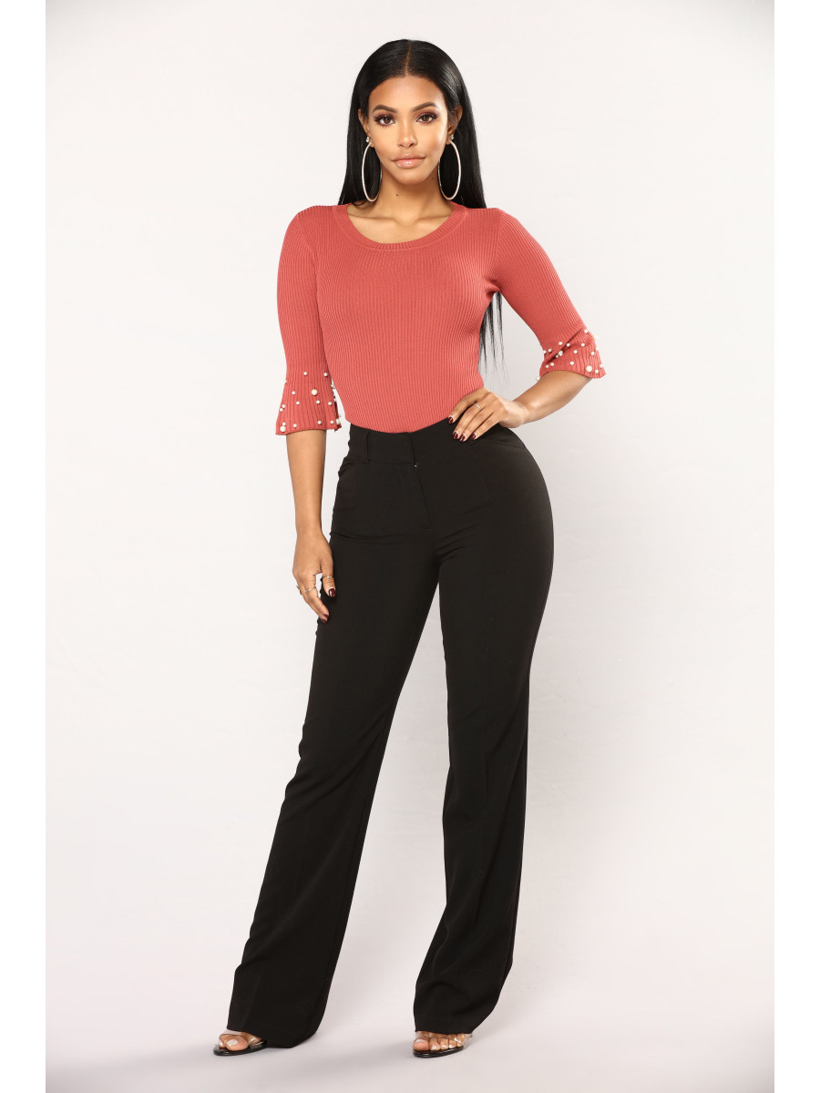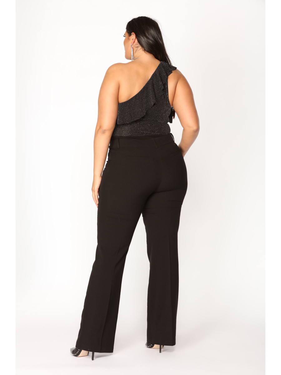 Додайте вишуканості вашому гардеробу зі святковими штанами "Таша". Ці штани з високою посадкою та широкими штанинами ідеально підійдуть для особливих випадків. Деталі у вигляді складок на штанинах додають елегантності, а дві передні кишені та дві задні імітовані кишені роблять їх функціональними. Є петлі для паска, що дозволяє доповнити образ. Штани мають повну розтяжність для максимального комфорту. Довжина по внутрішньому шву — 33 дюйми (для розміру S). Склад: 65% поліестер, 30% віскоза, 5% спандекс. Імпортний виріб.