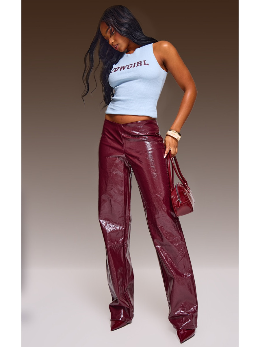 Зробіть серйозний образ стилю в цих бордових штанах зі штучної шкіри. Чого ще ви бажаєте? Створіть ці брюки зі штучної шкіри, доповнивши їх ефектним принтом, туфлями на підборах і аксесуарами, щоб створити образ, який неодмінно приверне увагу до вас всю ніч. Довжина приблизно 76 см/30 дюймів (на основі розміру вибірки UK 8) На моделі одягнено розмір UK 8/ EU 36/ AUS 8/ US 4. Зріст моделі — 5 футів 7 дюймів. Категорія: Низ. Тип продукту: Штани з прямими штанинами. Колір: бордовий. Матеріал: штучна шкіра. вечір