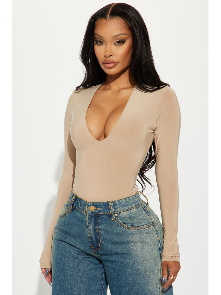 Приголомшливе боді з глибоким V-подібним вирізом та короткими рукавами, що створює надзвичайно жіночний образ. Модель з пікантним вирізом знизу та зручною застібкою-кнопкою забезпечує ідеальну посадку. Еластична тканина гарантує комфорт та впевненість протягом усього дня. Це боді стане вашим фаворитом для створення елегантних та чуттєвих образів.