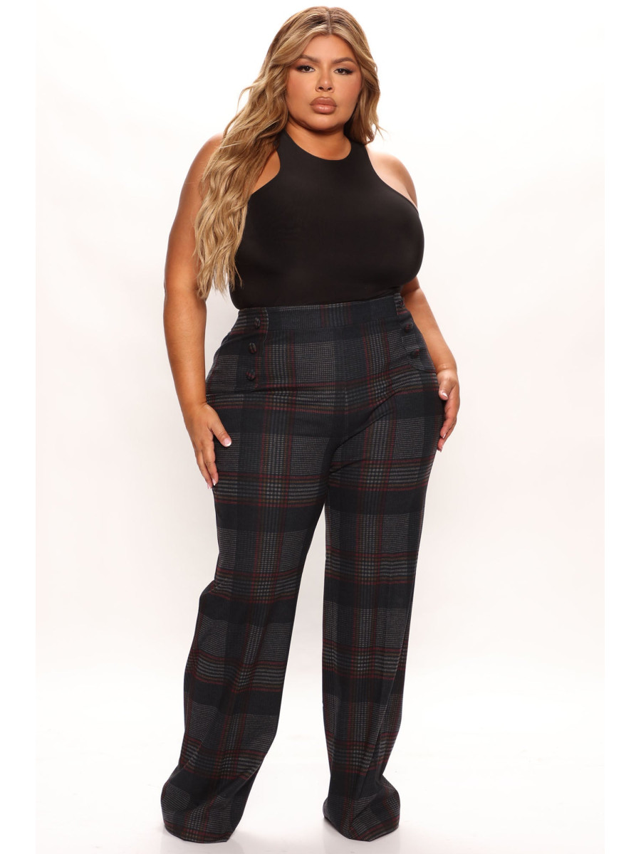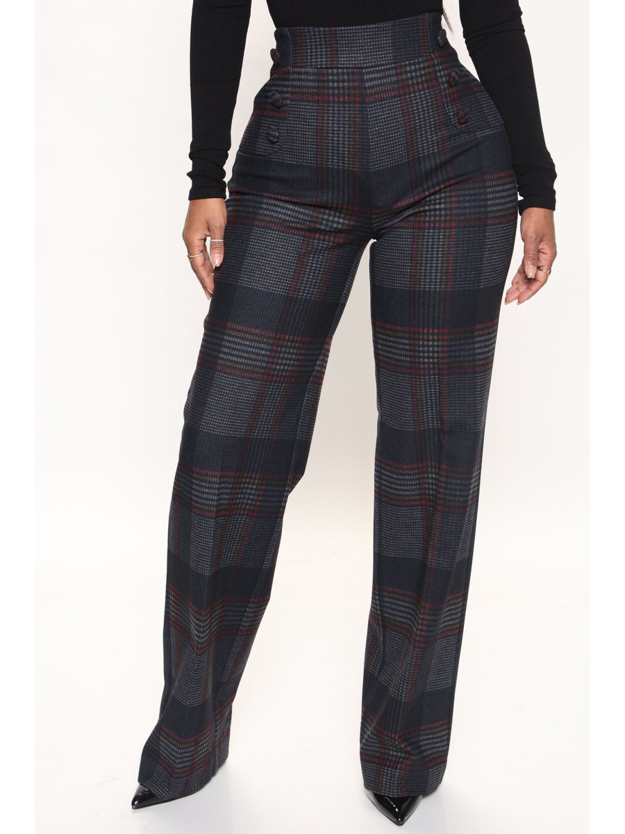 Відкрийте для себе стильні штани "Preppy" з широкими штанинами та ефектним картатим принтом. Ці штани поєднують класичний дизайн з сучасними елементами, включаючи декоративні ґудзики. Матеріал "понте" забезпечує приємне відчуття та еластичність. Довжина по внутрішньому шву — 33 дюйми. Зверніть увагу: розташування клітинки може відрізнятися, що робить кожну пару унікальною. Склад: 56% поліестер, 39% віскоза, 5% спандекс. Імпортний виріб.