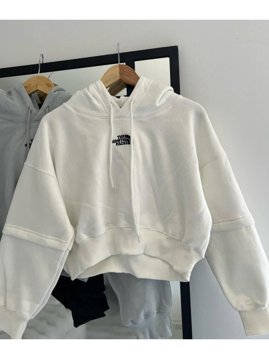 Худі ▪️Мод: ▪️Тканина:трьохнитка на флісі + манжети рібана❗️ ▪️Розміри: 42-46 (універсал) ▪️Кольори: чорний, сірий, молоко Лого — якісний накат